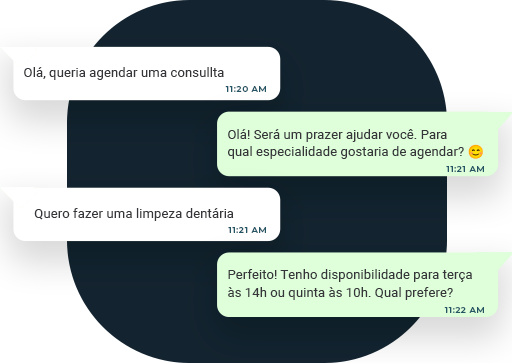 Criamos a inteligência artificial com o jeito de falar da sua recepcionista, as informações da sua clínica e os serviços que você oferece.